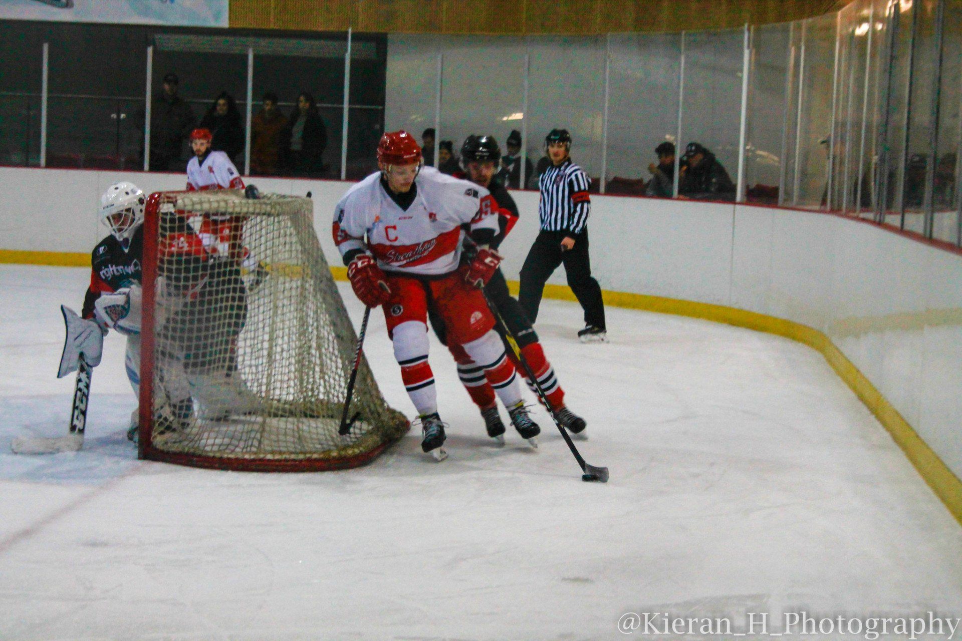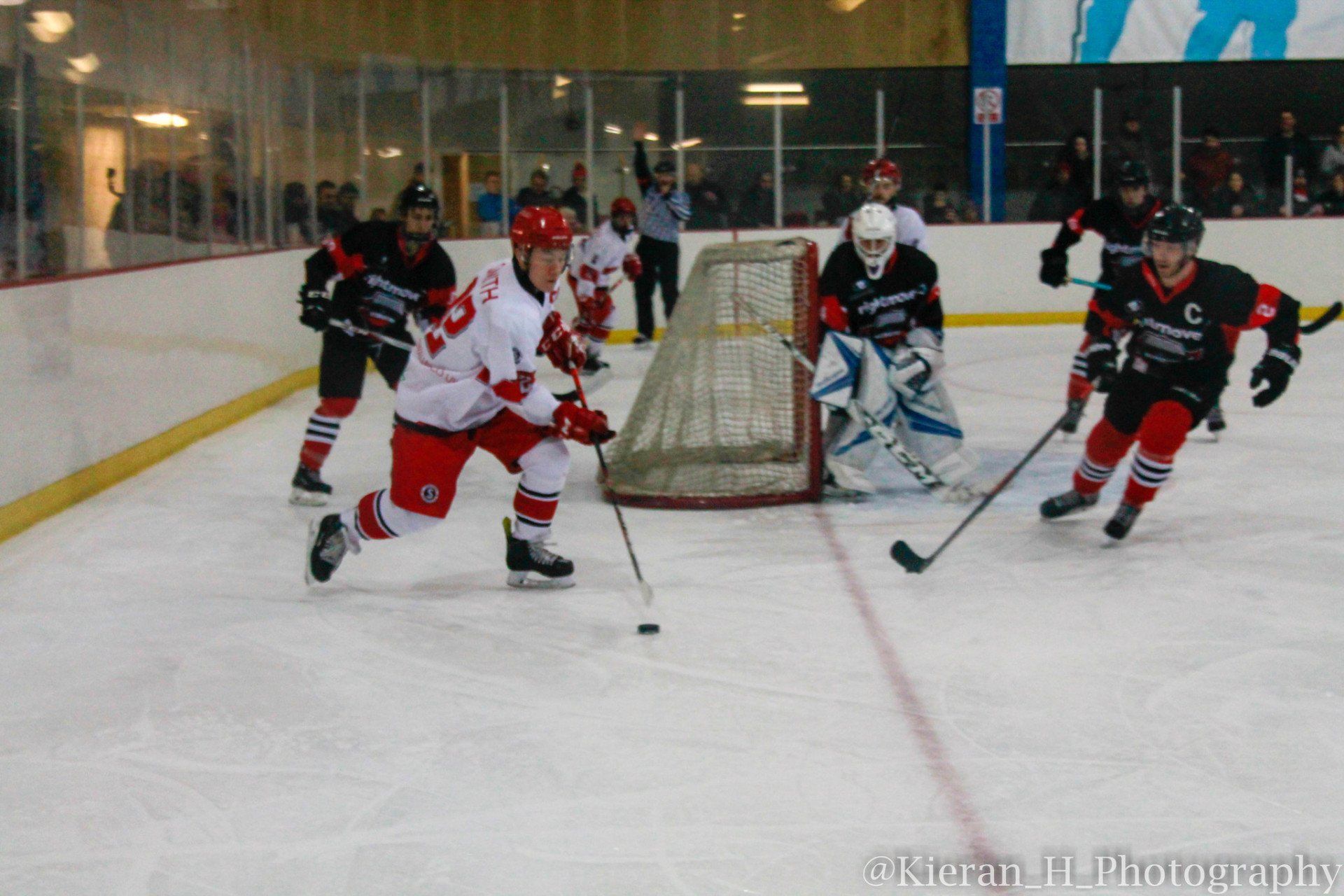 The visitors weren’t ready to roll over however and they pulled a goal back with under two minutes remaining in the first period as Reece Wickens buried a Sam Dean pass past Nate Gregory in the RedHawks net.